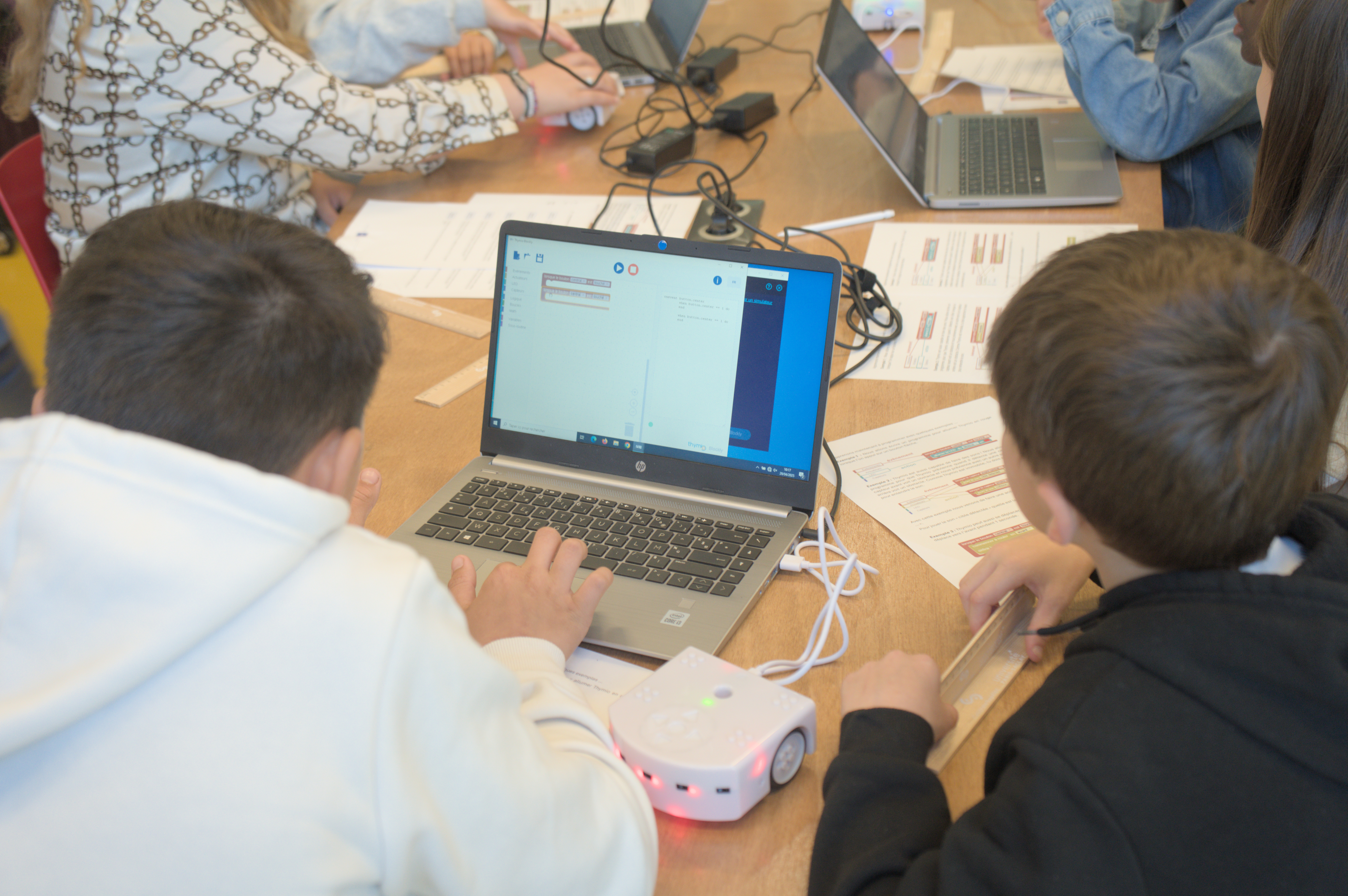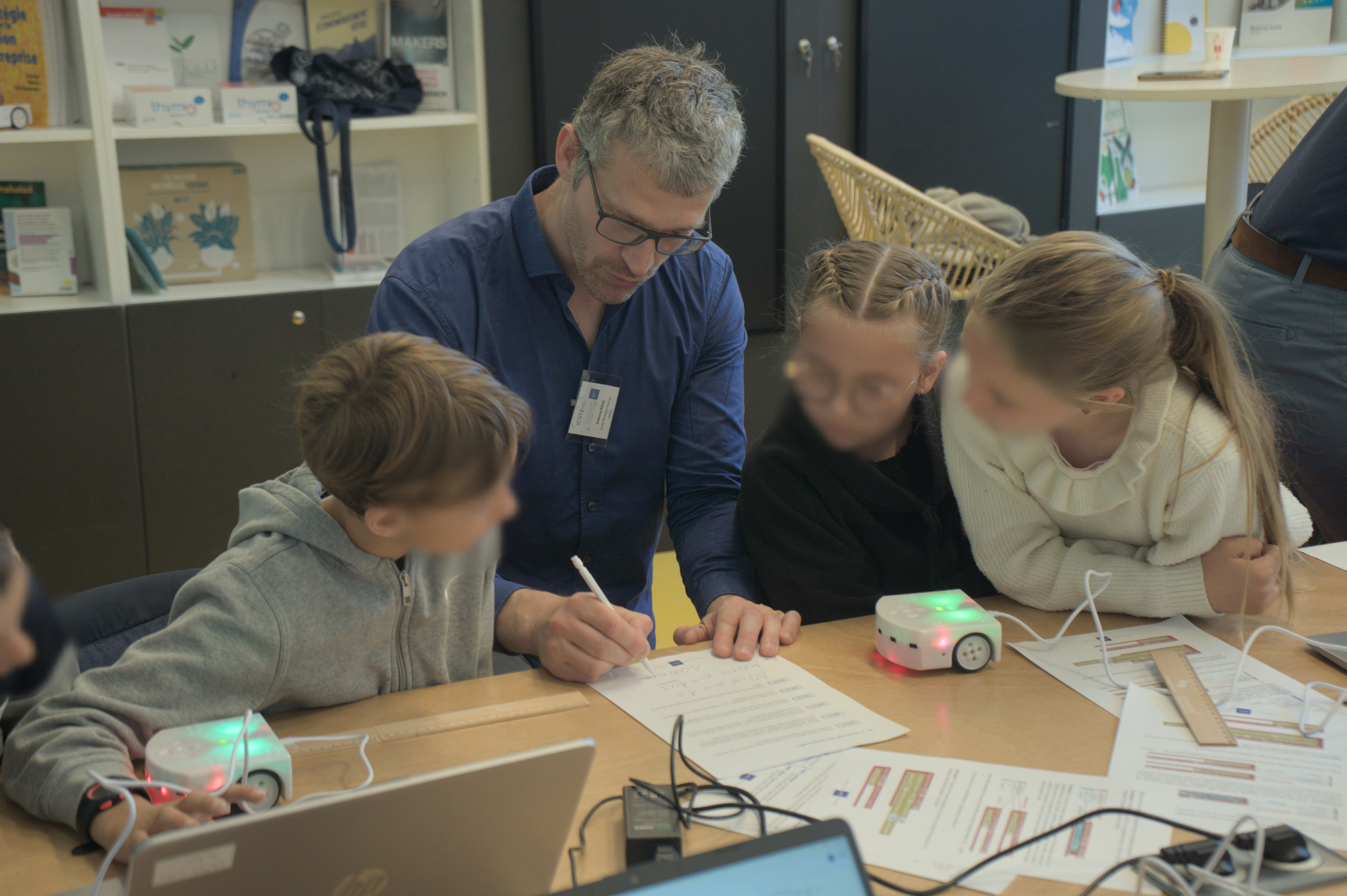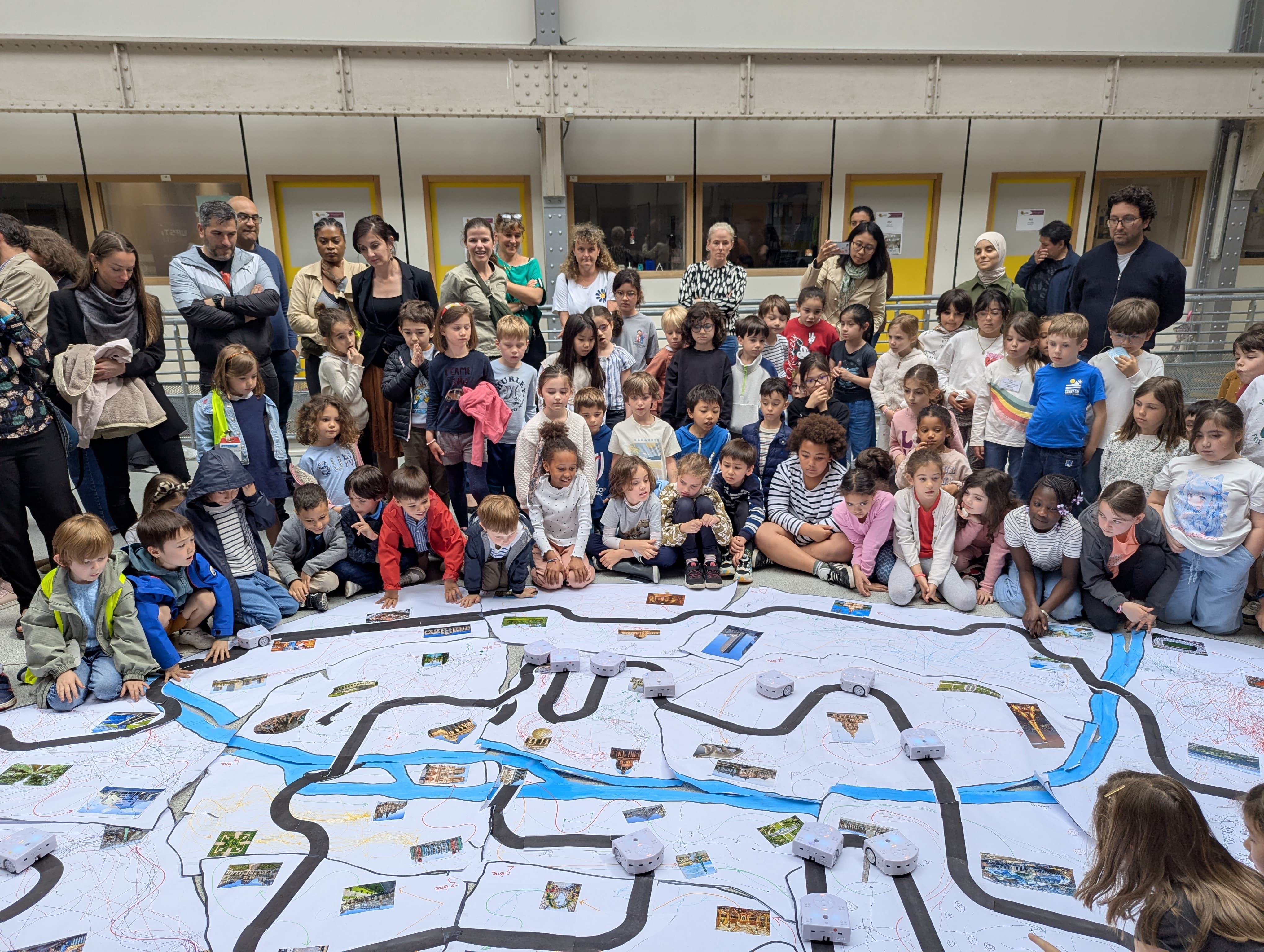 - Atelier de robotique avec une classe de CM1 lors de la conférence annuelle ICSteng 2025 organisée par l’UPSTI à l’école d’ingénieurs CentraleSupélec :
